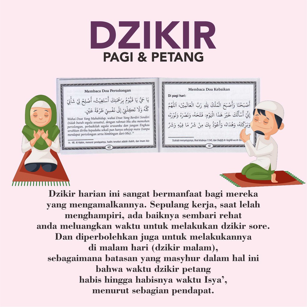 Dzikir petang dibaca ketika sore hari, antara waktu setelah shalat ashar hingga petang hari, kalau dzikir setelah shalat itu sama saja, yaitu bacaan dzikir setelah shalat, bacaannya sama saja, berbeda sedikit untuk bacaan dzikir setelah shalat khusus shalat maghrib dan shubuh, selengkapnya bisa dibaca disini Terdapat tulisan blok hitam yang menjadi tanda khusus bacaan dzikir pagi atau dzikir petang, secara umum semua bacaan dzikir petang adalah bagian dari bacaan dzikir pagi, namun terdapat perbedaan pada point 3 dan 15. Nabi muhammad saw mengingatkan kepada umatnya untuk memperbanyak dzikir dan wirid di waktu sore. Dzikir sholat pagi petang oleh ustadz yazid. Berikut adalah dzikir pagi hari dan petang yang dapat kita amalkan setiap hari,.